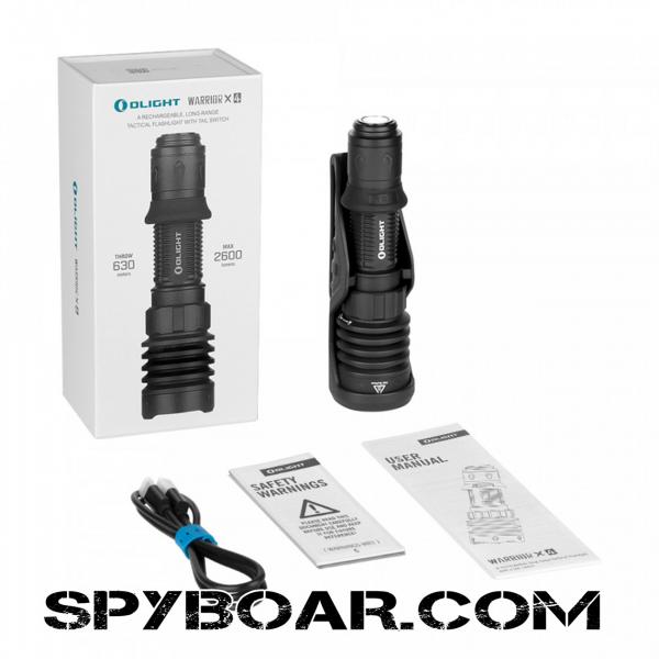 Warrior X4 е акумулаторен тактически фенер, съчетаващ висока мощност и далекобойност, с впечатляващи 2600 лумена и обхват на лъча до 630 метра. Короната от неръждаема стомана и тактически превключвател осигуряват изключителна здравина и надеждност. В допълнение към MCC опцията за зареждане, фенерът разполага със скрит Type-C порт, предоставяйки гъвкавост и удобство. Индикаторът за оставащото ниво на батерията е проектиран за ясно и ефективно показване на състоянието. С функцията за програмиране на бутона, потребителите могат да персонализират фенера според нуждите си, избирайки между нормални и тактически режими на осветление. Комплектът включва кобур, който е изключително удобен при използване, правейки Warrior X4 незаменим инструмент за патрулиране, лов, ремонтни дейности или всякаква употреба на открито и в домакинството. Фенерът е съвместим с оръжейните аксесоари на Olight, като крепежи и кабели sRod.