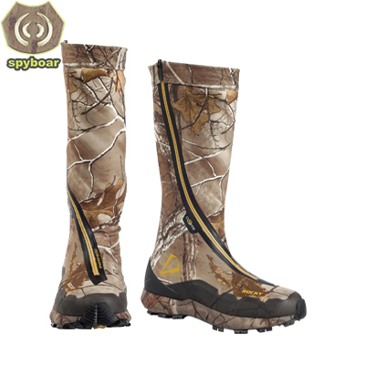 За направата е използван материал от олекотен и много здрав плат. Самите ботуши са много гъвкави и удобни за ходене. Използвани са мембрани, които предпазват ходилото ви от изпотяване. Друго голямо предимство е много реалната маскировка, щампована върху плата, което ще ви прави още по – прикрити за дивеча по време на ловните излети.