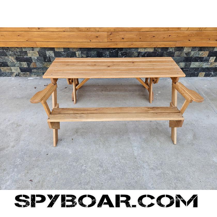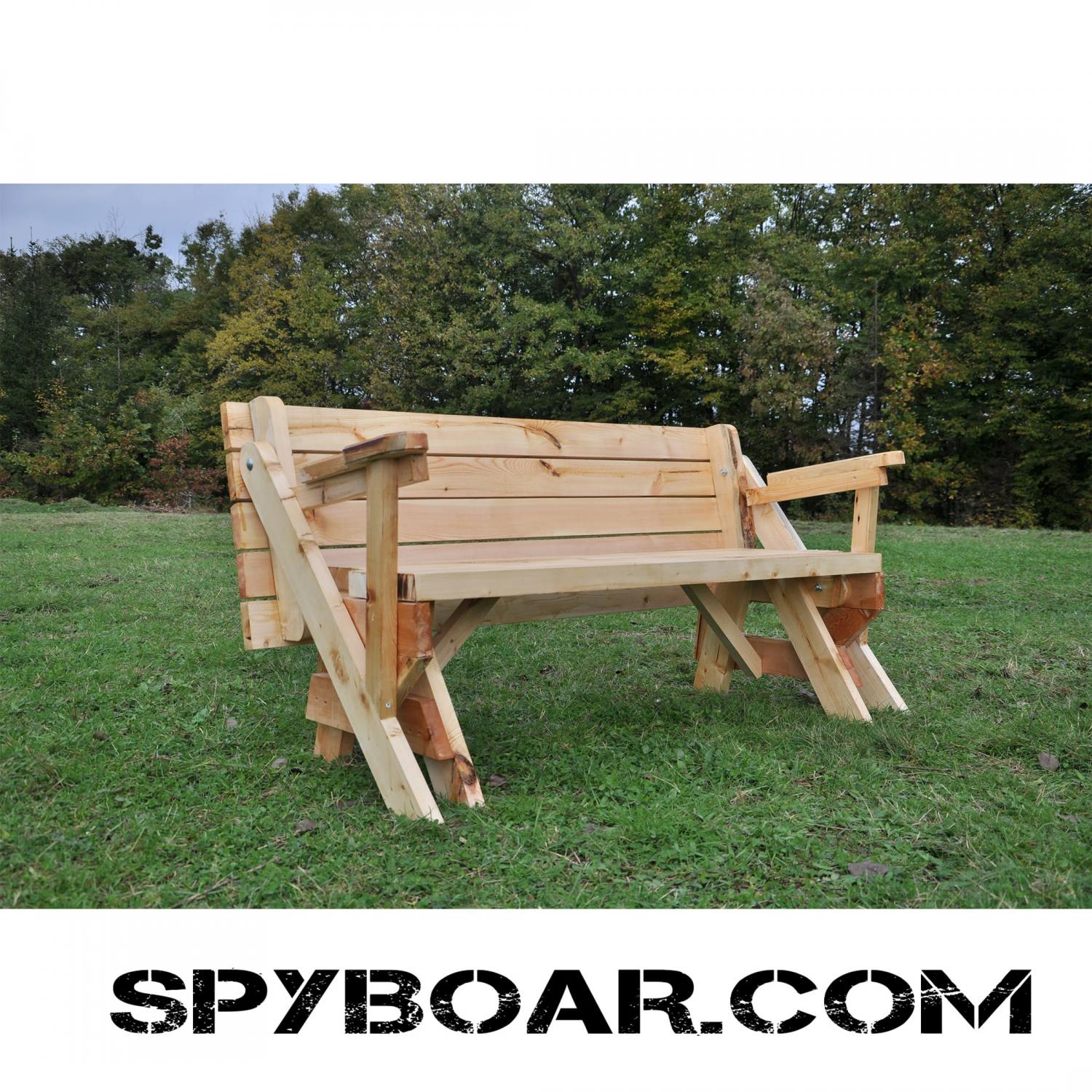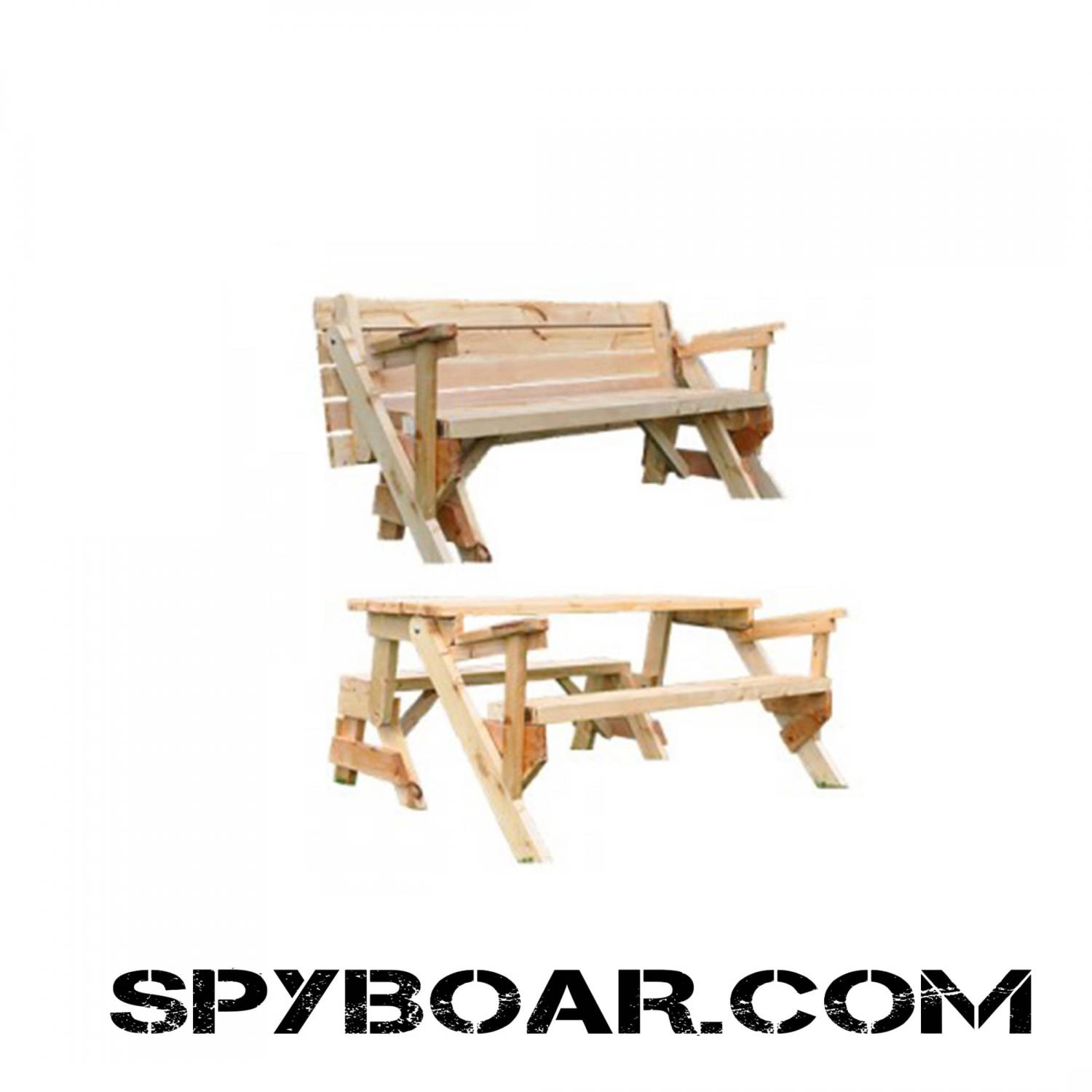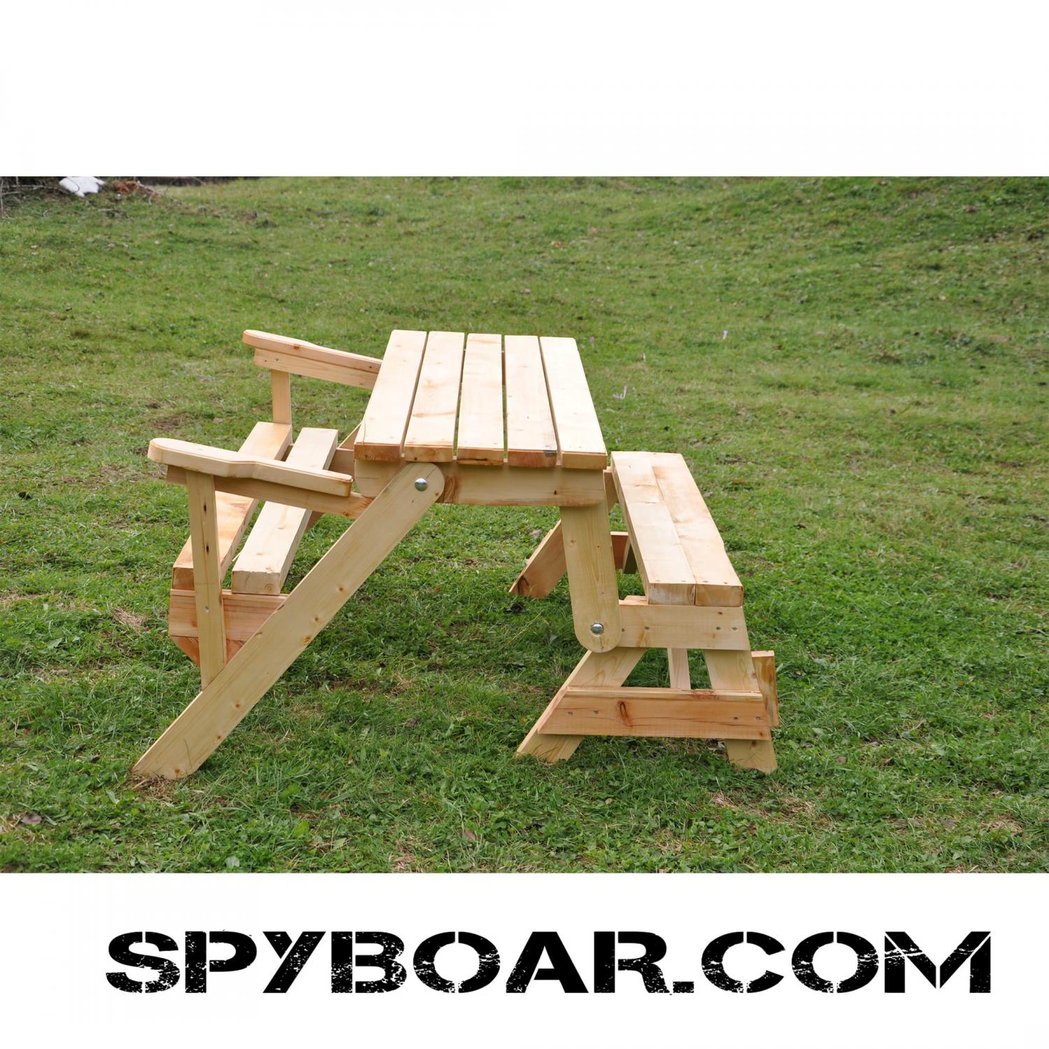 Folding bench - table two in one, entirely made of wooden construction