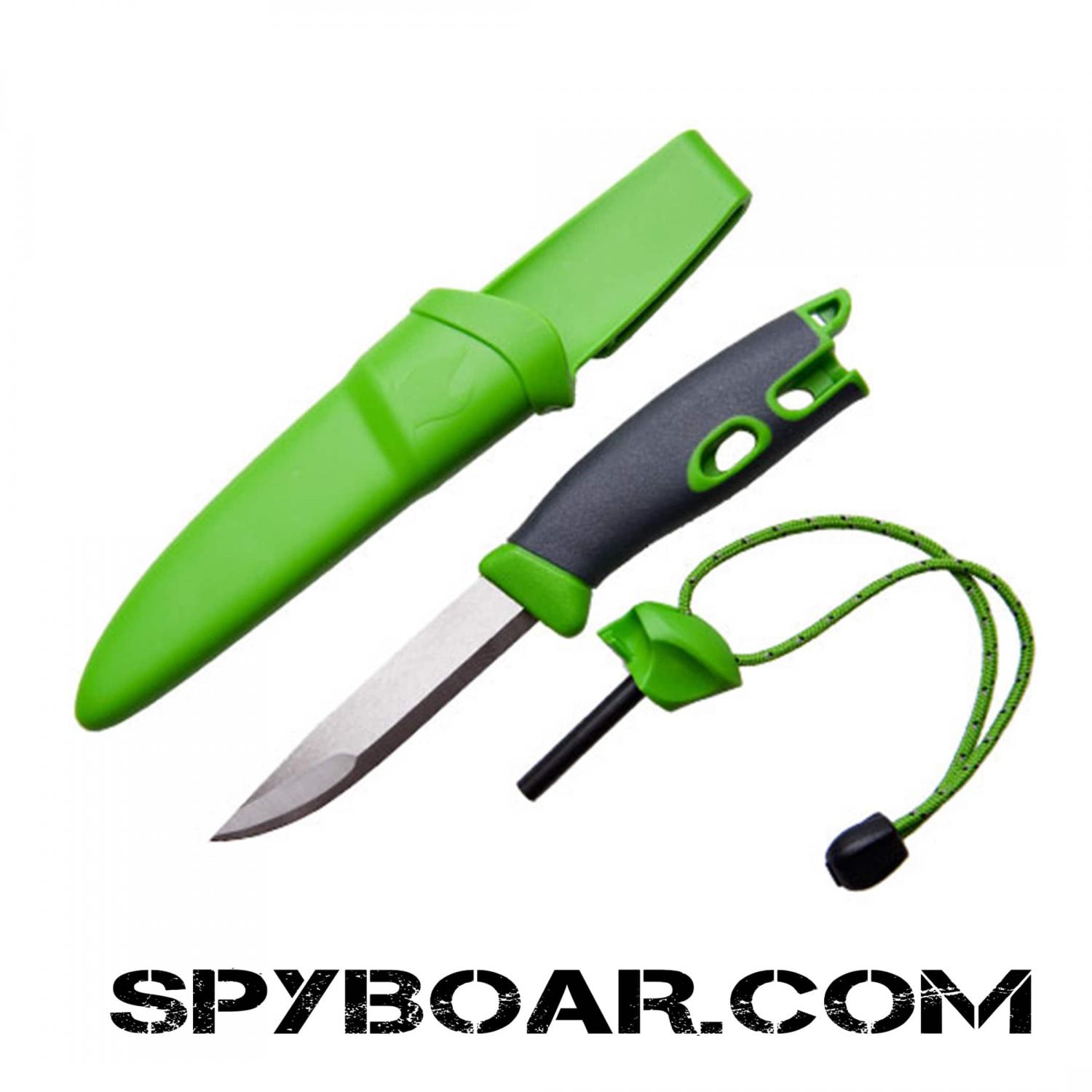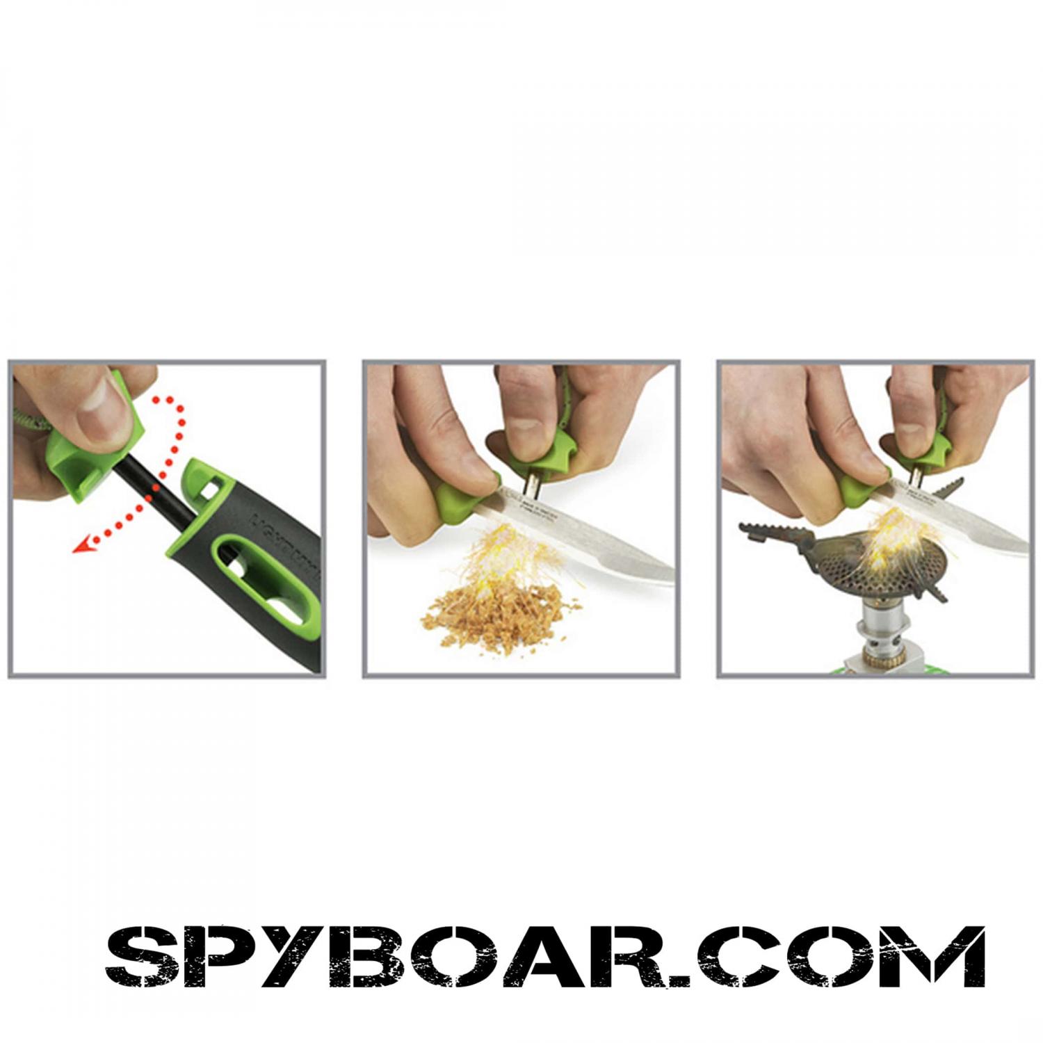 Knife Light My Fire. It is widely used in hunting, fishing, camping, tourism and others. Suitable for use in all weather conditions. The knife is extremely sharp and made of very high quality durable steel- FireSteel®. The product is provided with a plastic handle that has magnesium lighter, which can fire through sparks. The knife is an extremely versatile and reliable, combining ergonomics and practicality with the same tool that can cut the meat and make the fire. There is a plastic sheath with clip system, that protects the knife in bad weather. This product is manufactured in Sweden. Also product has rubber handle with a high degree of friction. The knife works equally well in wet weather and at high heights. Produces a spark of 2,980 ° C